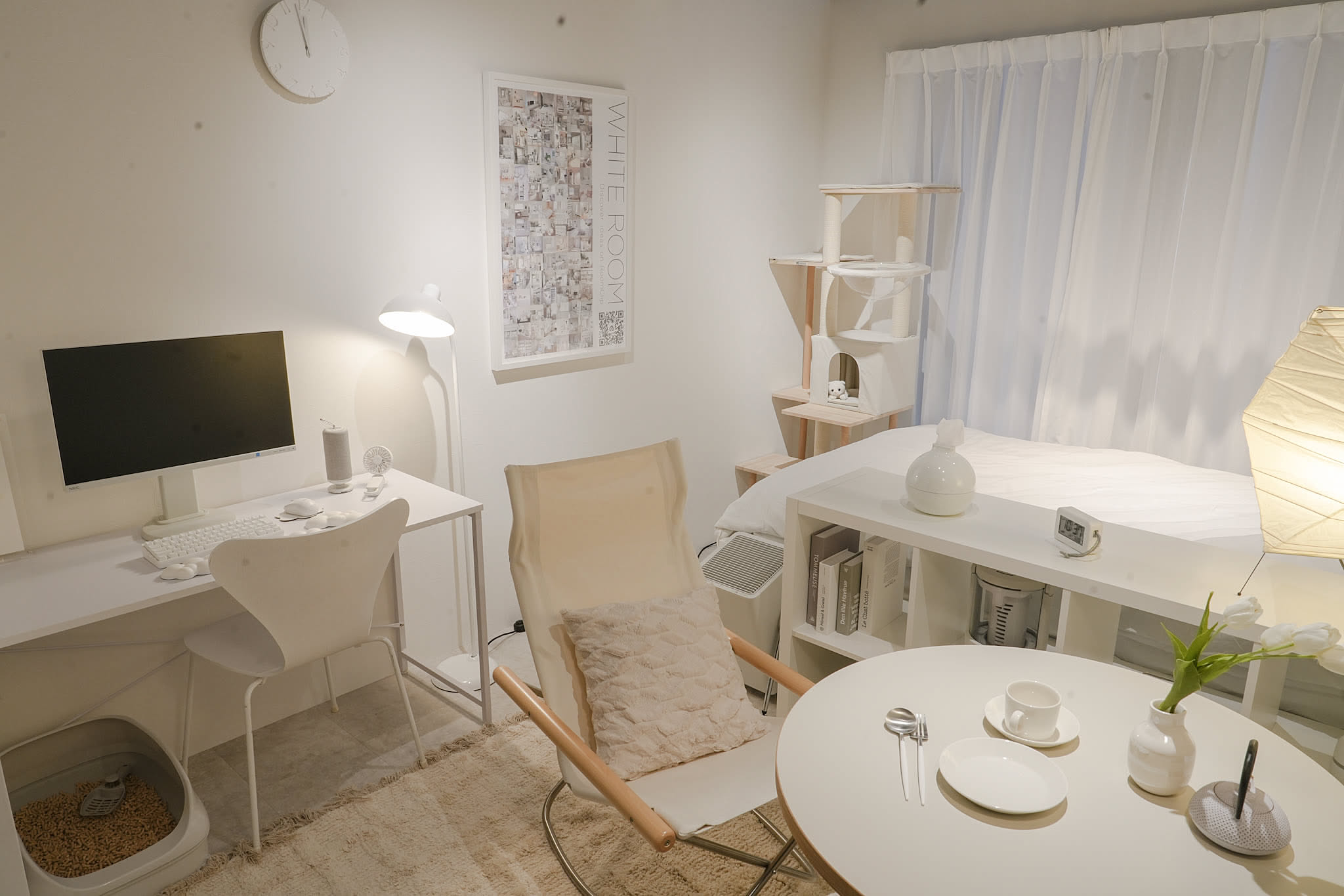 今回の展示では、RoomClipに蓄積された650万枚を超える膨大な投稿写真を分析。6畳1間という限られた住空間の中でも、色の選択ひとつで暮らしの印象や過ごし方が変わることを、対照的な「黒の部屋」「白の部屋」で表現しました。